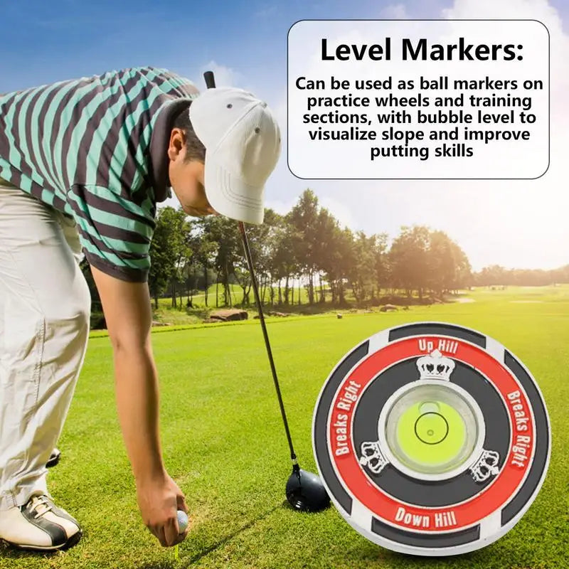 Elevate your golf game with this premium Golf Level Marker Ball Marker. Made with top-notch alloy material for durability and precision, this marker helps you get accurate green readings with the high precision bubble level. Improve your confidence on the green and make the perfect gift for any golf enthusiast. The double-sided design features a golf ball pattern and a spirit level for ease of use and increased confidence on the green. Add this to your golf accessories collection and watch your game improve instantly.
